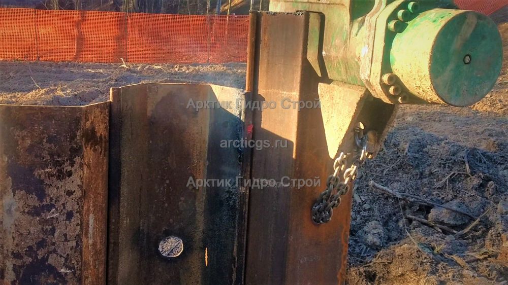 Устройство шпунтового ограждения вибропогружателем ICE 44B с последующим извлечением и выкупом шпунта Ларсена на объекте строительства: Реконструкция автодороги от Минского шоссе до Боровского шоссе Очистные сооружения №1.