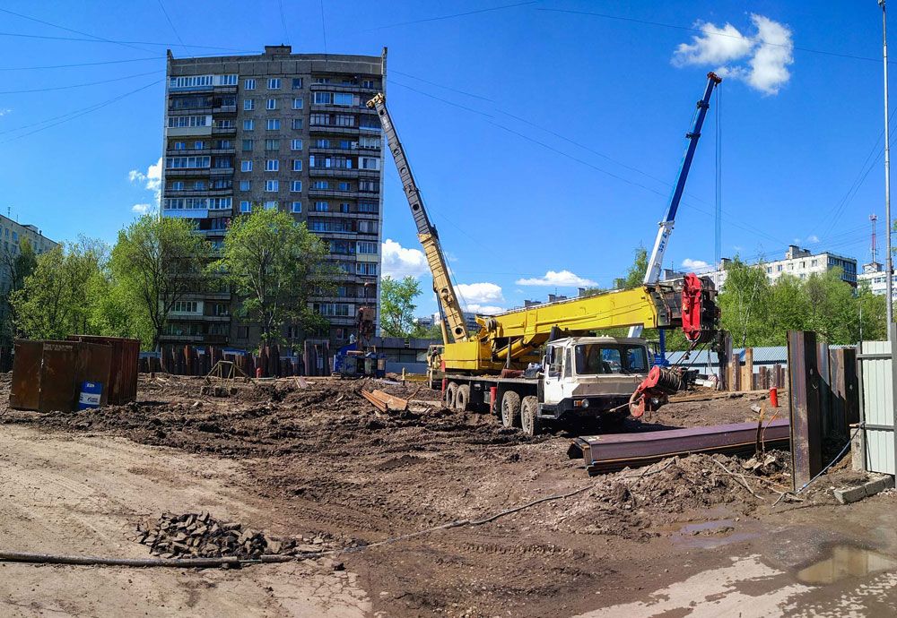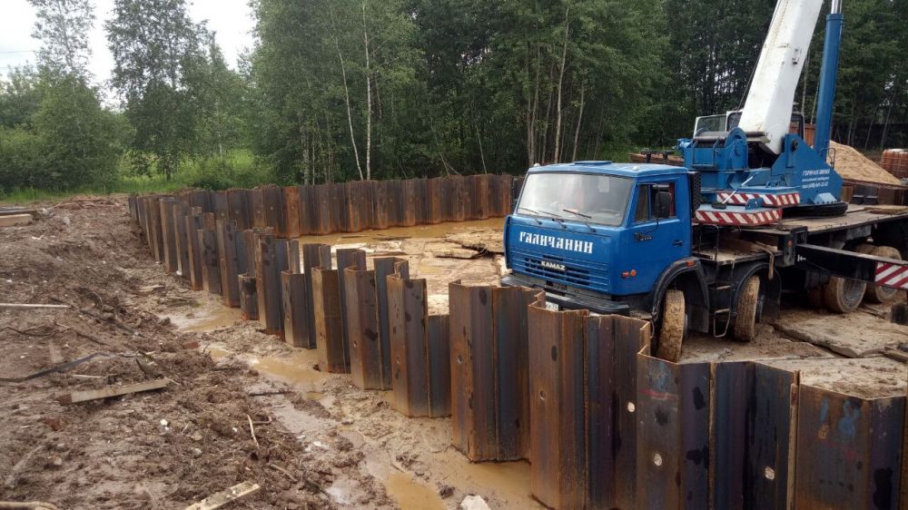 Устройство ограждения из шпунта Ларсена методом вибропогружения на объекте строительства административного здания