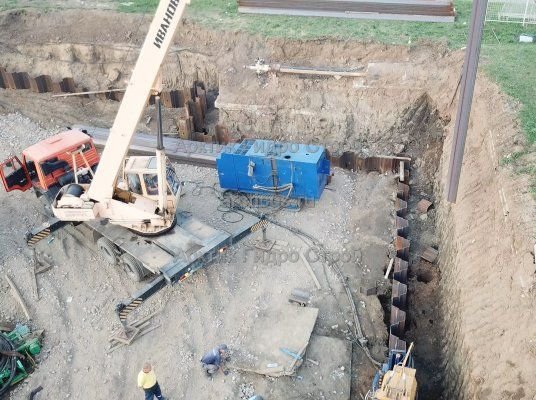 - монтаж стенок из трубошпунта и шпунта Ларсена;
