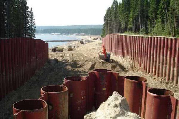 Шпунтовое ограждение котлована из шпунта Ларсена с распорами, выполненное специалистами «АрктикГидроСтрой»