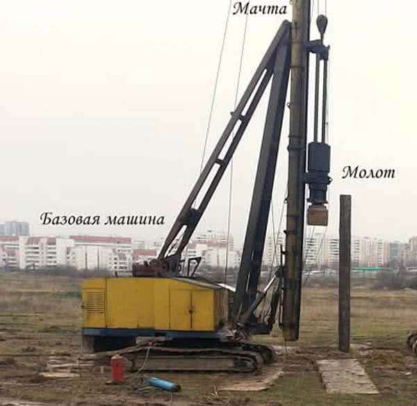 • вибропогружение с помощью специальных установок. Быстрый и эффективный метод, подходит для большинства грунтов. Имеет некоторые ограничения к применению в черте города из-за вибраций, которые могут повредить расположенным рядом постройкам;